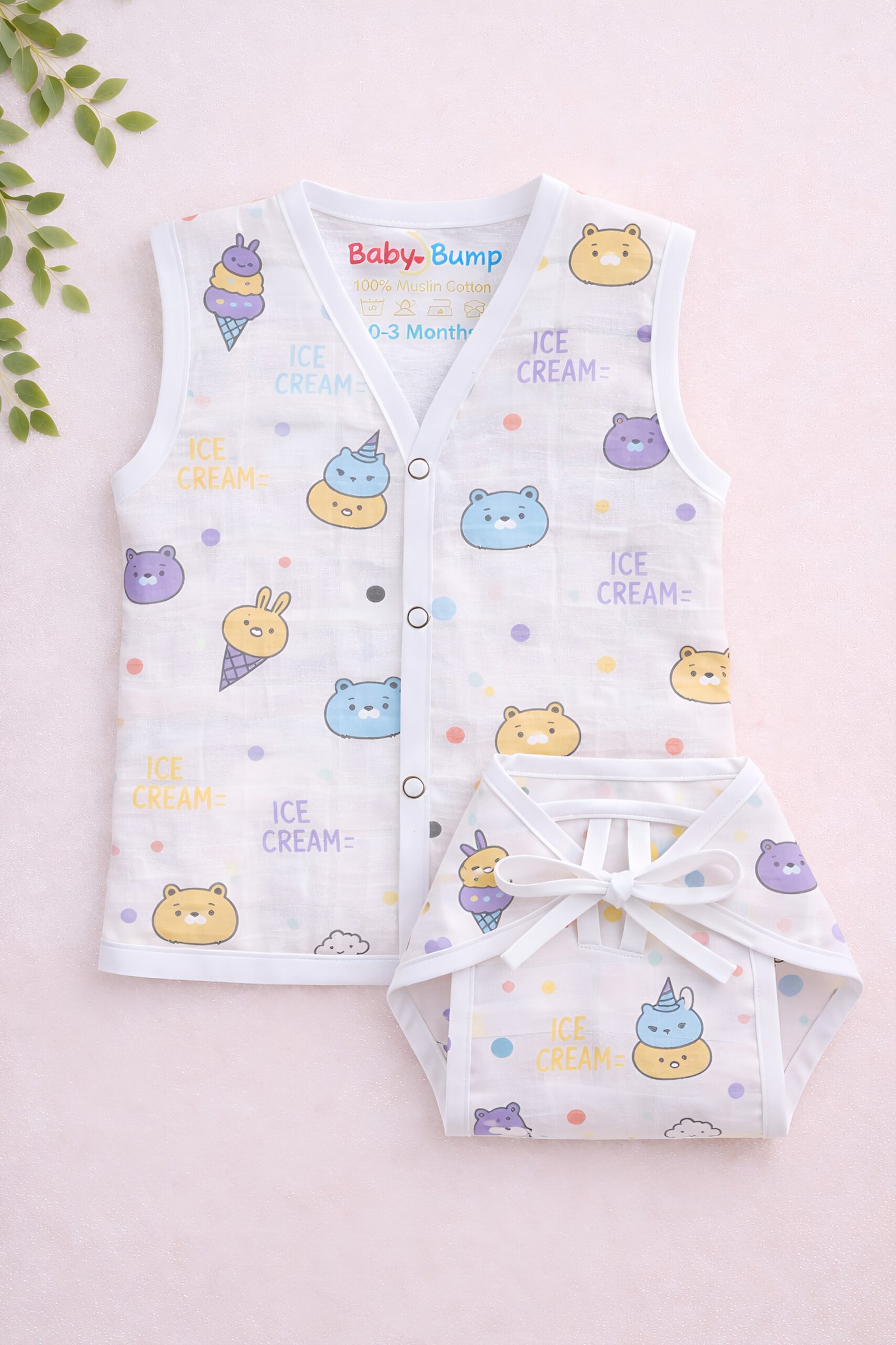 Muslin Front Open Jabla & Nappy (Single) – Ice Cream
