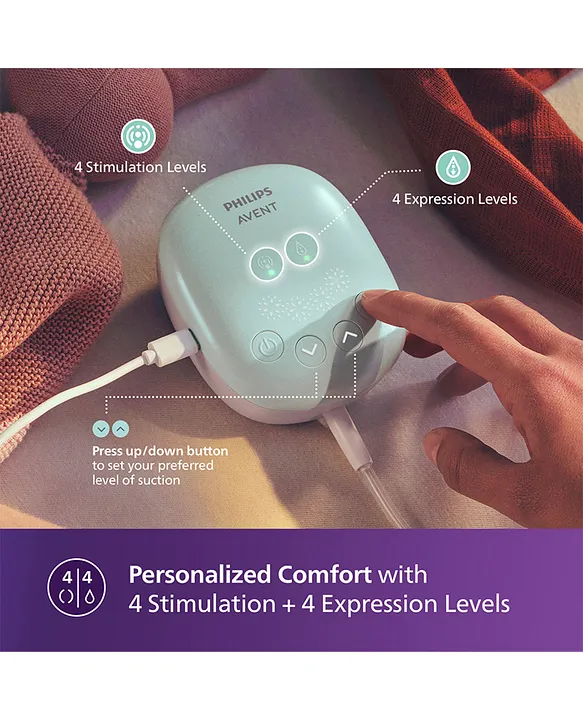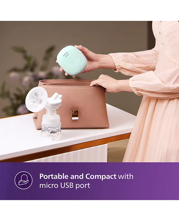 Avent Philips Portable Electric Breast Pump | No.1 Brand Recommended by Moms Worldwide | Soft adaptive Silicon Cushion | One Size Fits all | 4 + 4 Expression and Stimulation settings | Quiet Motor | USB Charging SCF323/11 – White
