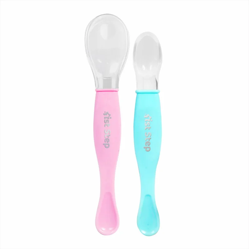 BPA Free Heat Sensitive Soft Tip Spoon (Pink & Green)