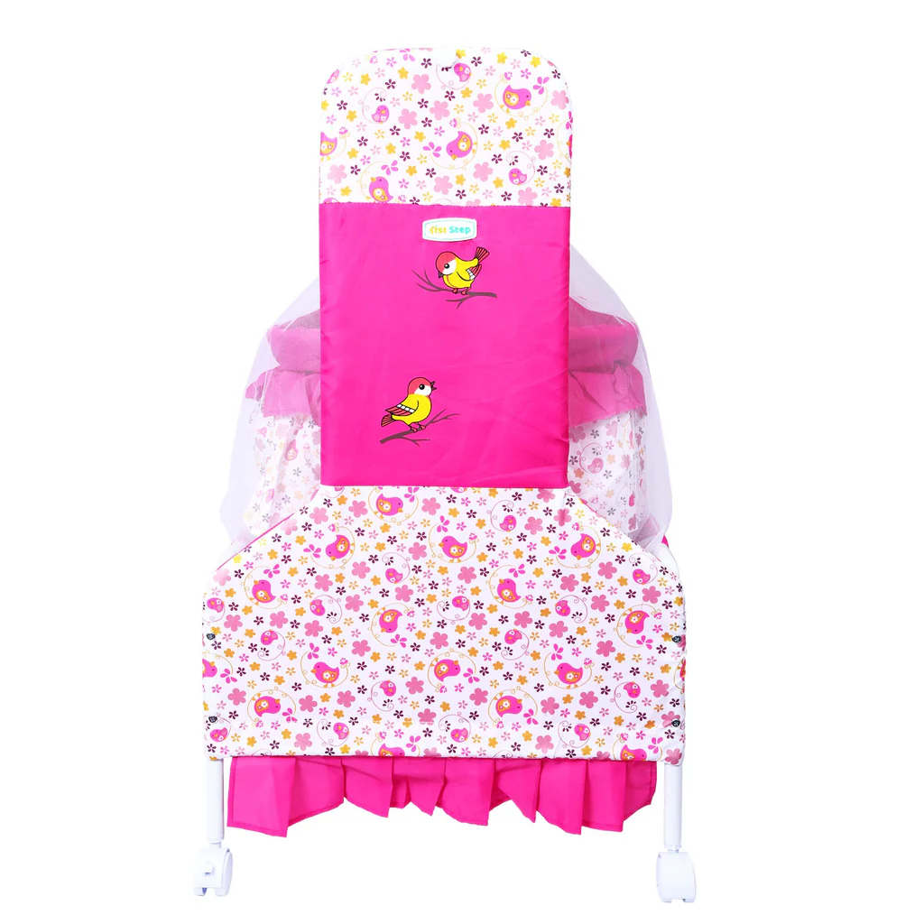 Cradle with Swing, Mosquito Net and Storage Basket (Pink)