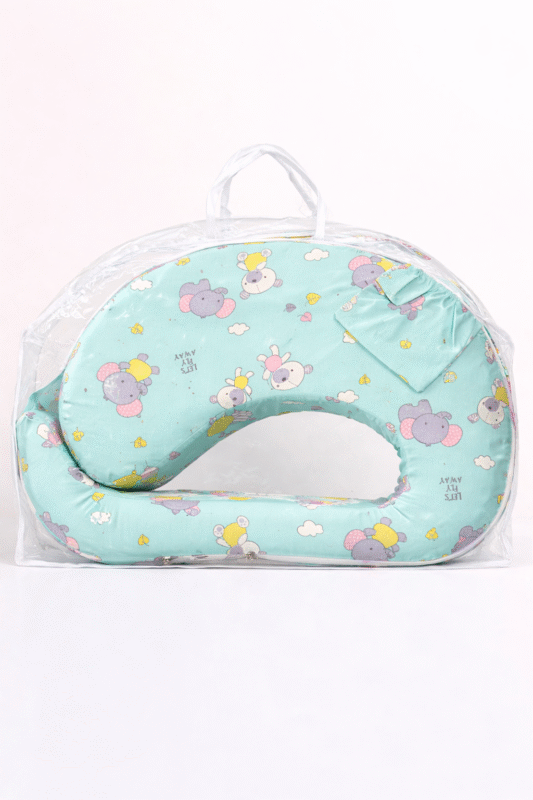 Soft Cotton Fabric:Â Made from high-quality cotton, the pillow is soft against the baby’s skin, promoting comfort during feeding.