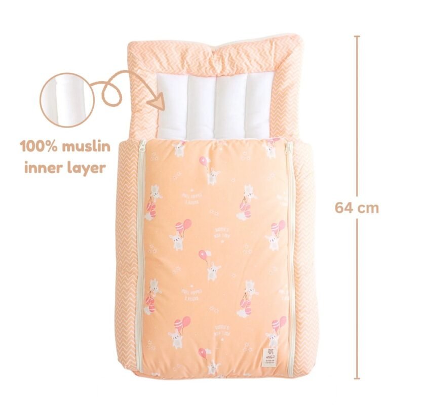 The organic muslin carry bed gives your newborn a cozy, secure place to rest. Crafted from 100% breathable muslin, it offers a soft and gentle touch on delicate baby skin while ensuring proper airflow.
