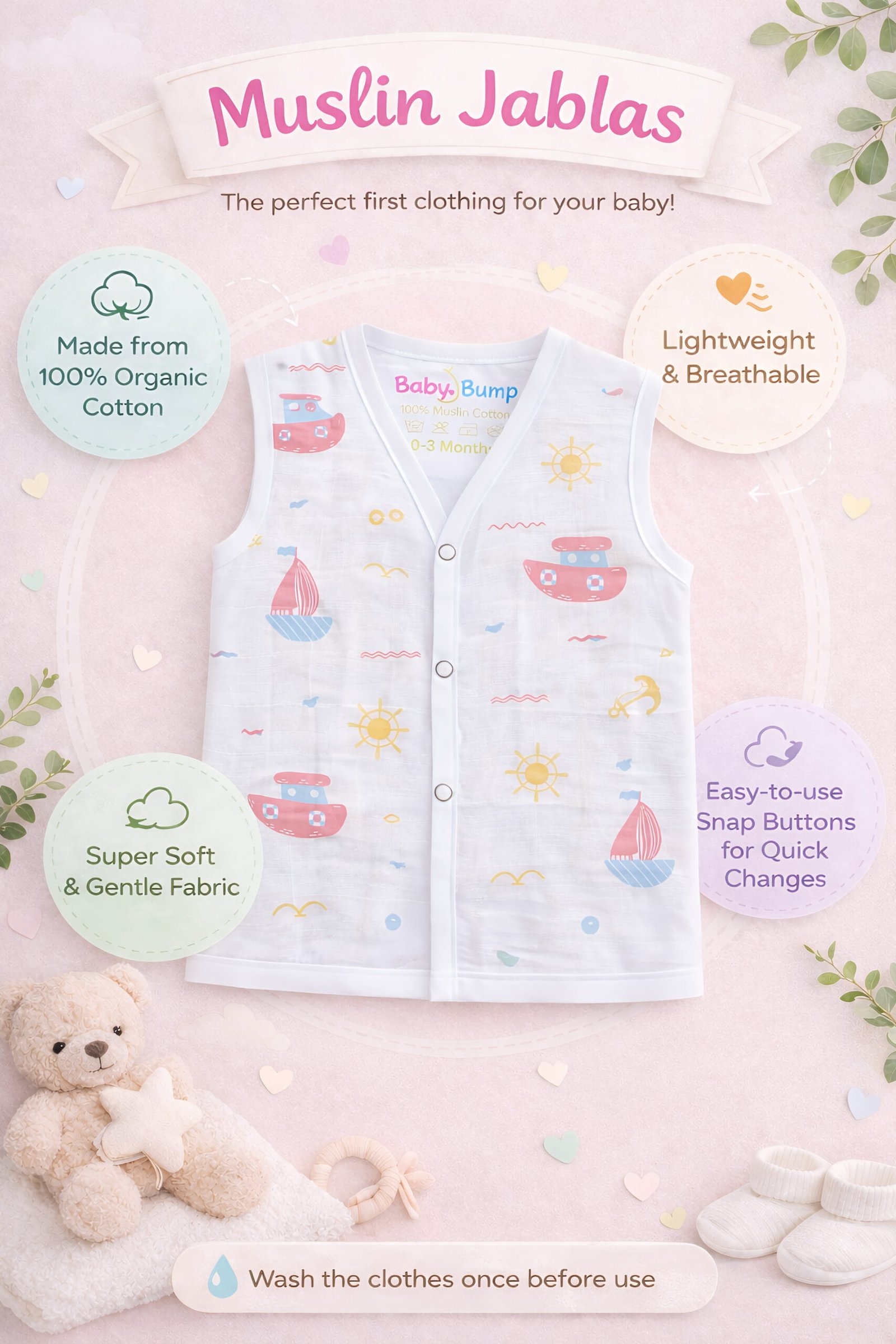 Muslin Front Open Jabla - Playtime Sprinkle Original price was: ₹200.00.Current price is: ₹130.00.