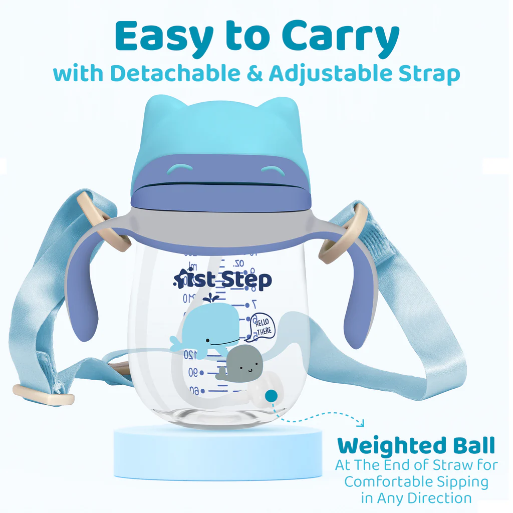 TRITAN 280 ml BPA Free Anti-Spill Soft Silicone Weighted Straw Baby Sipper Cup with Twin Handle – Blue