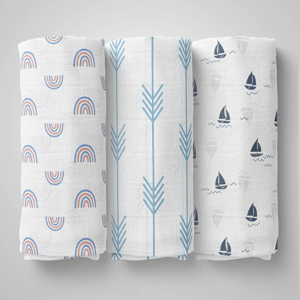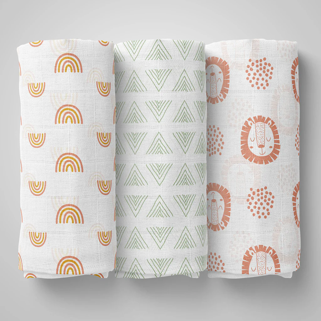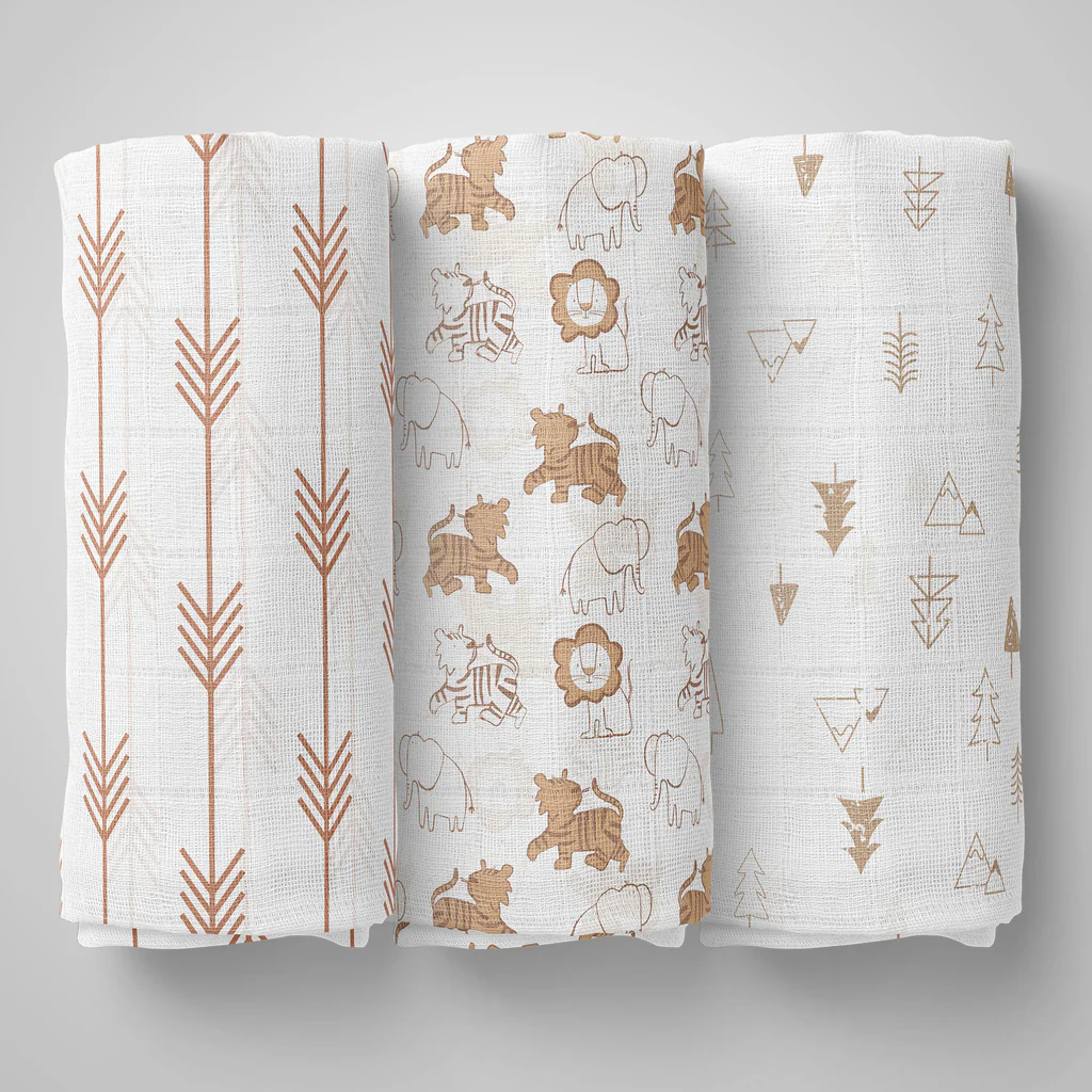 100% Cotton Muslin Baby Swaddle Set, Pack of 3, Size-120cm x 100cm