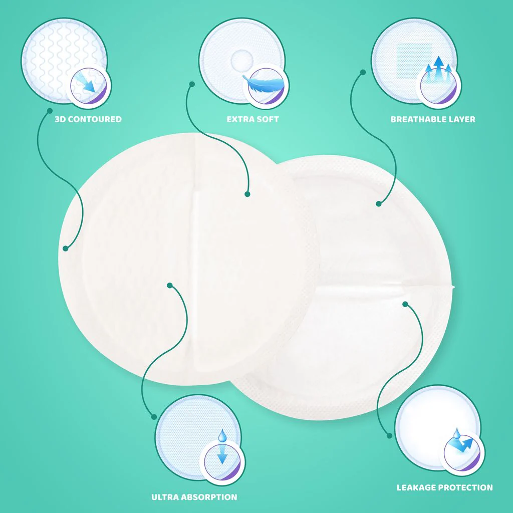 Honey Comb Lining, Super Absorbant Disposable Breast Pads With Day And Night Protection- 60 Pads