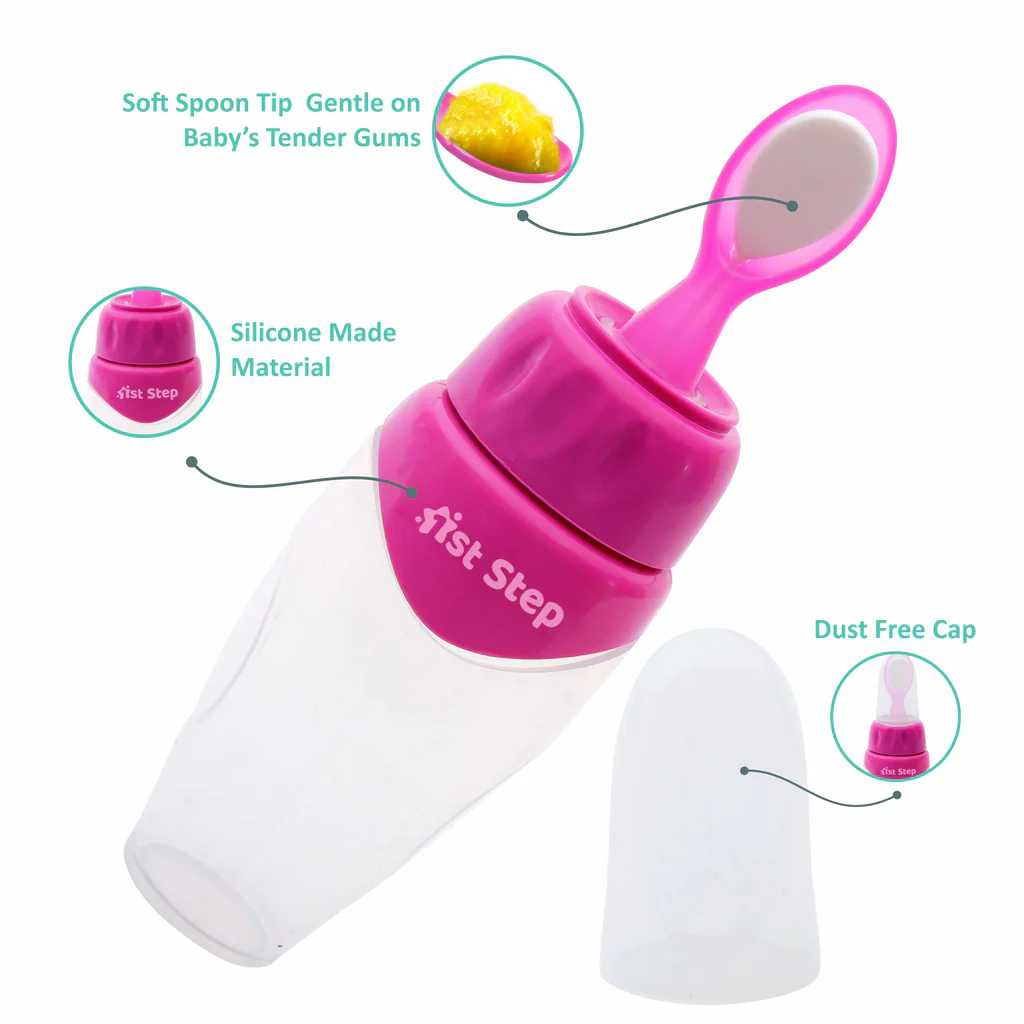 Non Spill Silicone Soft Squeeze Food Feeder-Pink