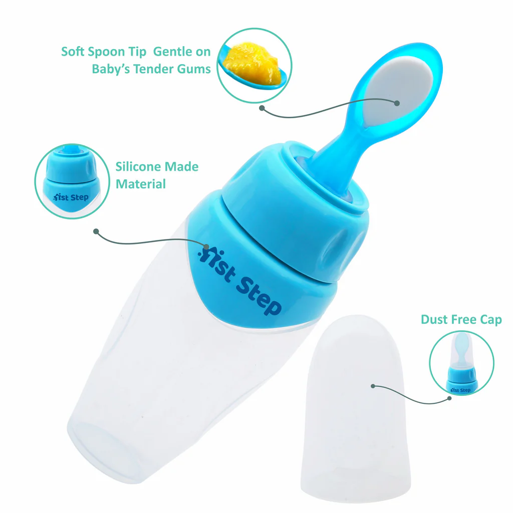 Non Spill Silicone Soft Squeeze Food Feeder-Blue
